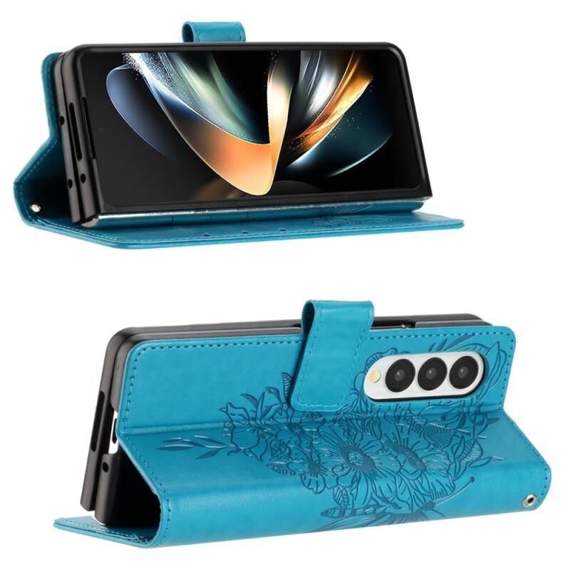 Θήκη τηλεφώνου δερμάτινη με ανάγλυφο σχέδιο πεταλούδας για Samsung Galaxy Z Fold3 5G (Κόκκινη)