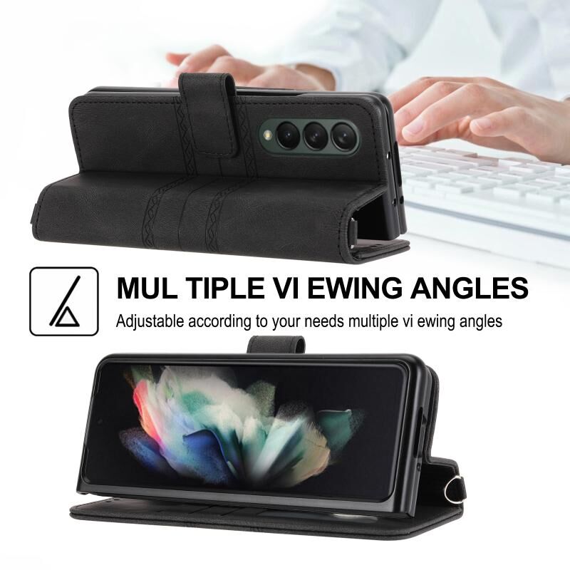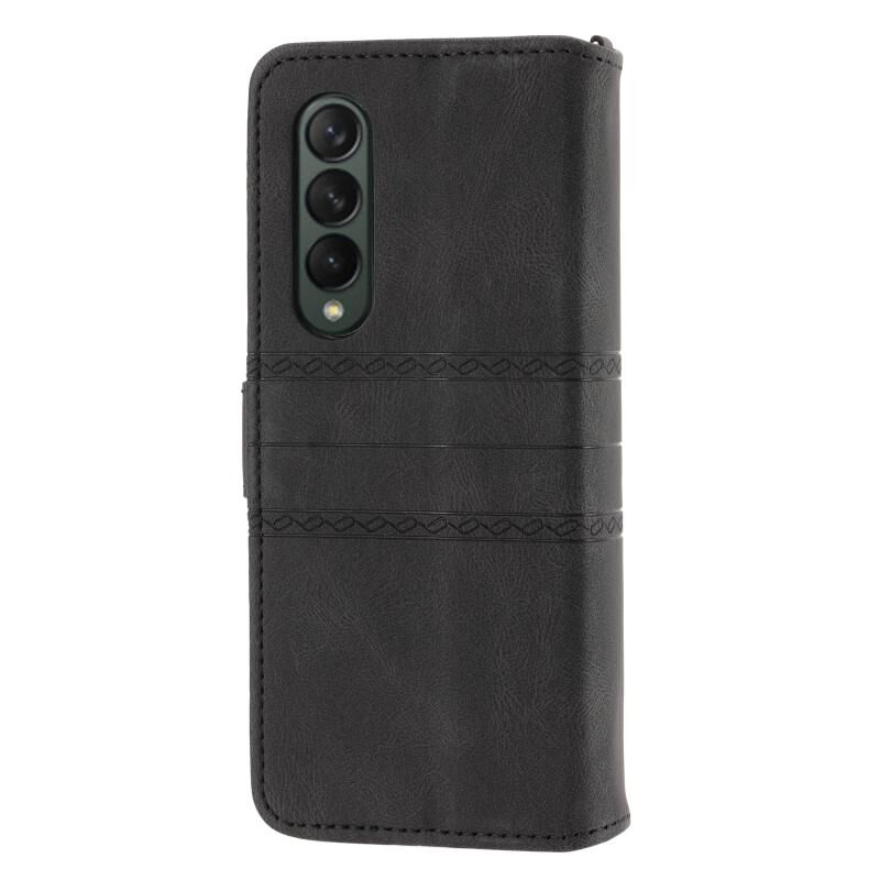 Για Samsung Galaxy Z Fold3 5G ανάγλυφο ριγέ μαγνητική πόρπη PU + TPU οριζόντια Flip τηλέφωνο δερμάτινη θήκη (Μαύρο)