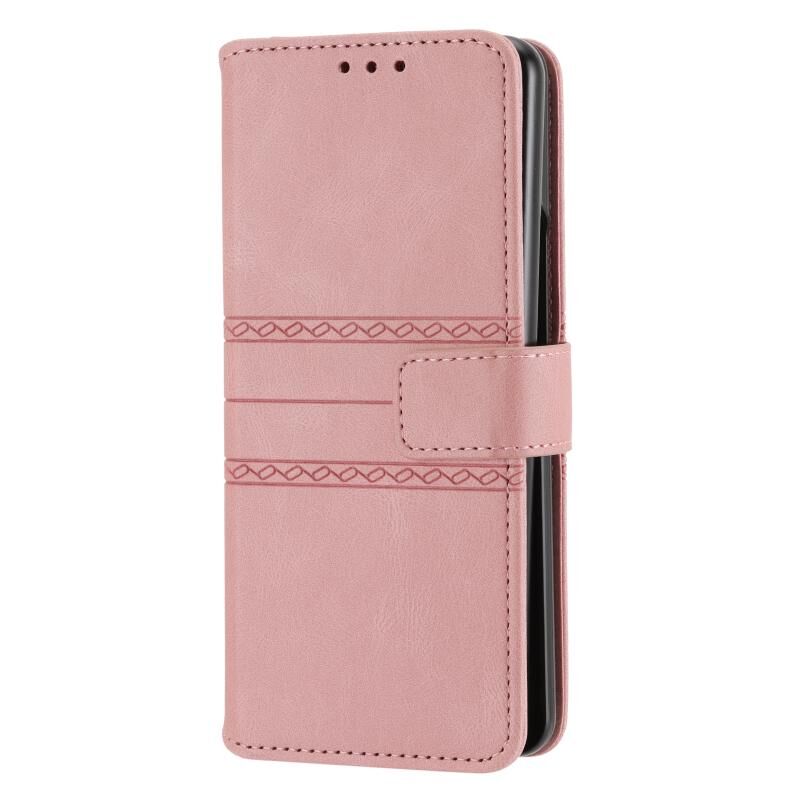 Για Samsung Galaxy Z Fold3 5G ανάγλυφο ριγέ μαγνητική πόρπη PU + TPU οριζόντια Flip τηλέφωνο δερμάτινη θήκη (ρόζ)
