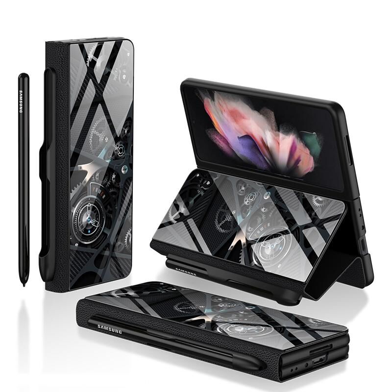 For Samsung Galaxy Z Fold3 5G GKK Flip Tempered Glass Phone Case with Pen Slot(Machinist) (GKK)