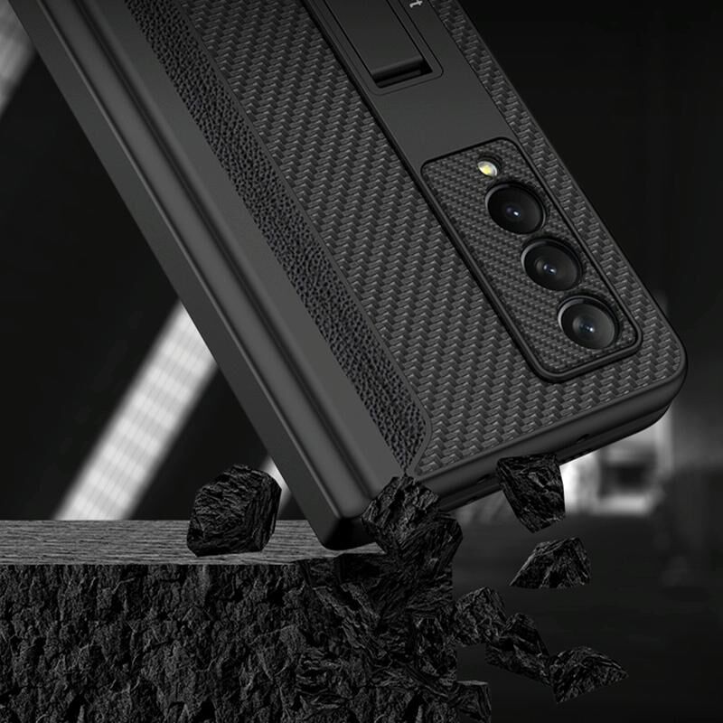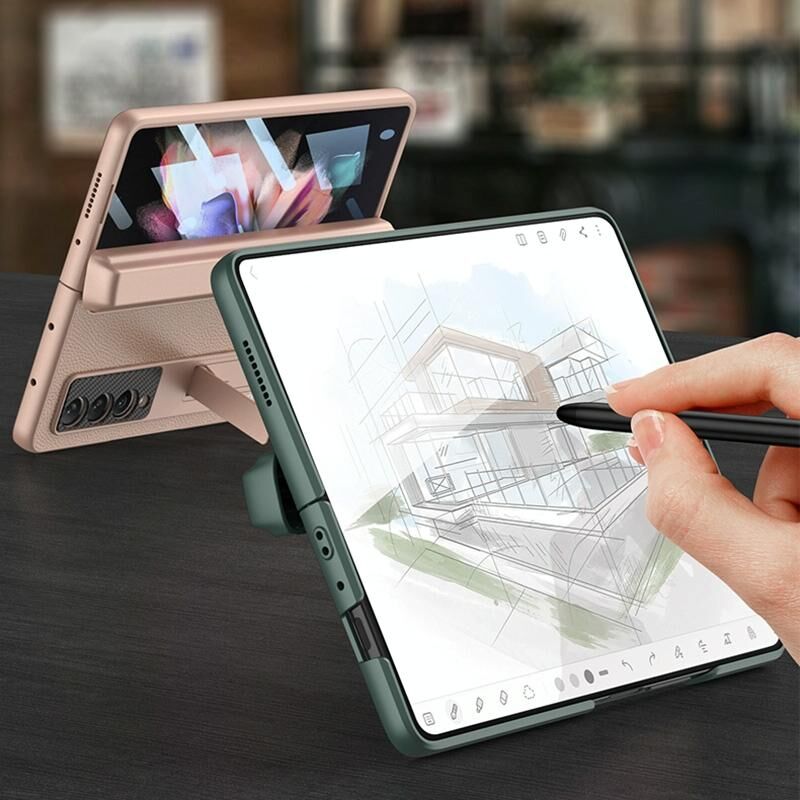 Για Samsung Galaxy Z Fold3 5G GKK Μαγνητική μεντεσέ Απλή δερμάτινη θήκη για τηλέφωνο με στυλό (μαύρο) (Μαύρο)