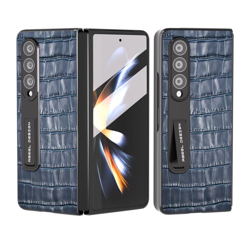 Θήκη τηλεφώνου από γνήσιο δέρμα με ενσωματωμένη υφή κροκόδειλου για Samsung Galaxy Z Fold3 5G (Μπλε)