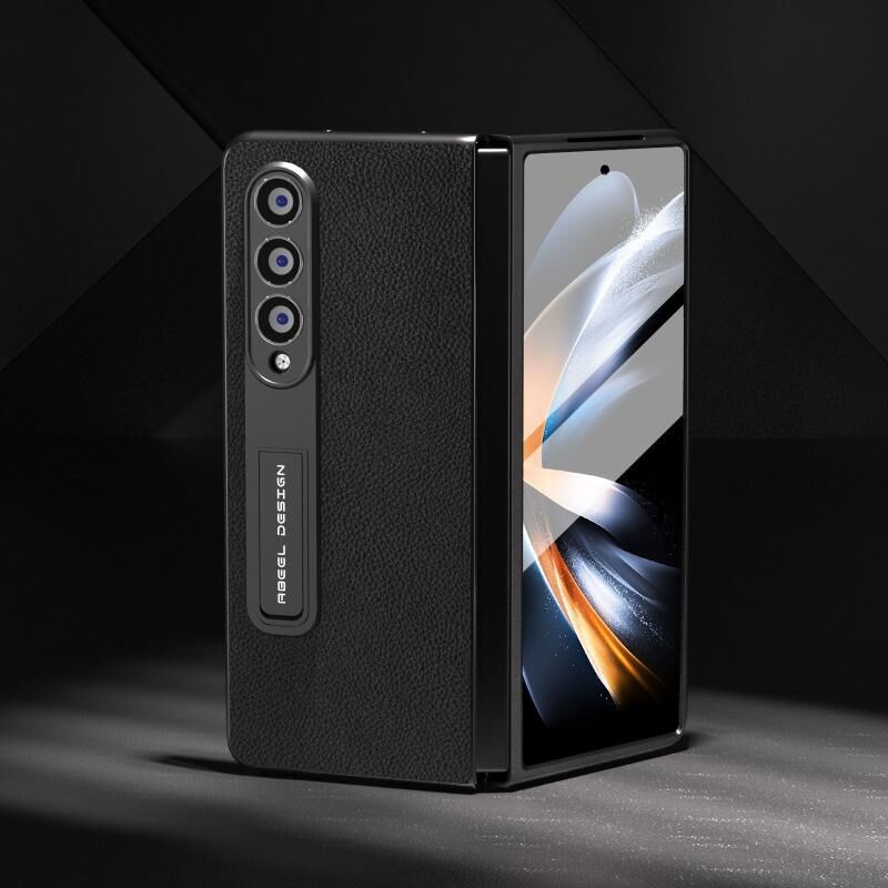Θήκη τηλεφώνου Samsung Galaxy Z Fold3 5G με ενσωματωμένο γνήσιο δέρμα + PC με υφή Litchi και βάση στήριξης (Μπλε)