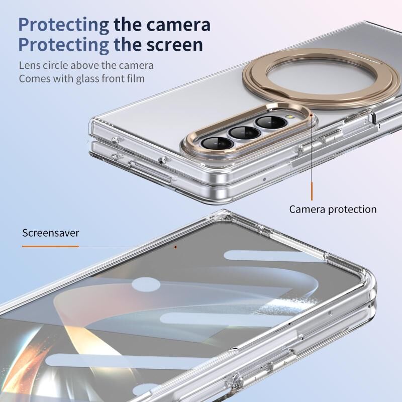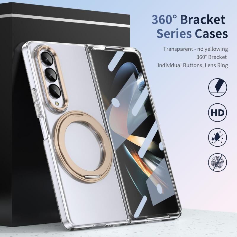 Θήκη τηλεφώνου Samsung Galaxy Z Fold3 5G, ενσωματωμένη με αίσθηση πάγου, υψηλής διαφάνειας, περιστρεφόμενη κατά 360 μοίρες με βάση MagSafe (Χρυσαφί της Ερήμου)
