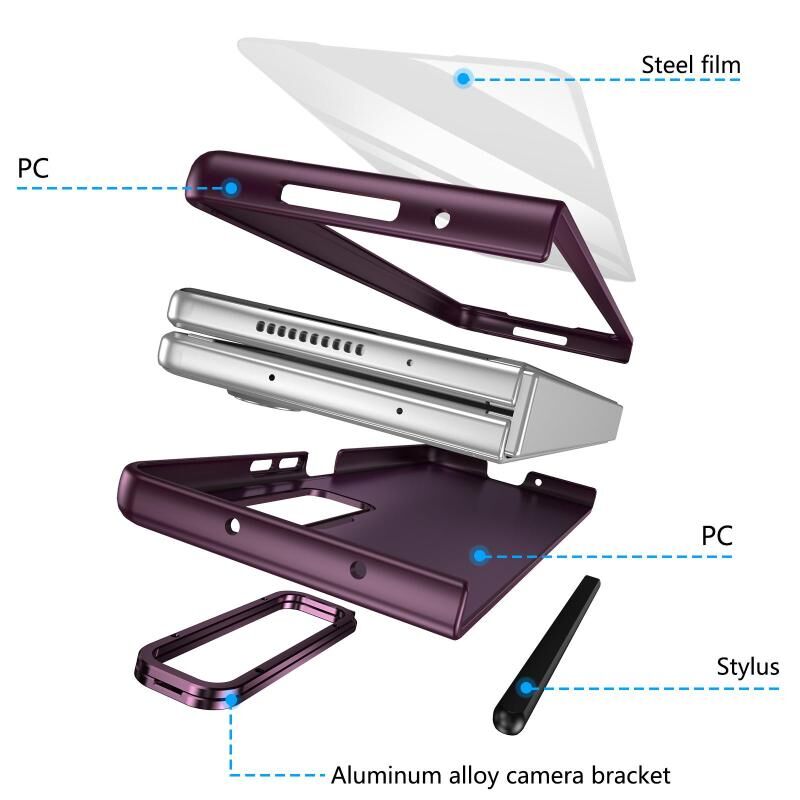 Θήκη κινητού τηλεφώνου με ενσωματωμένη αίσθηση δέρματος, φακό, πτυσσόμενη βάση, υποδοχή για στυλό και αντικραδασμική προστασία για Samsung Galaxy Z Fold3 5G με στυλό (Κρασοκόκκινο)