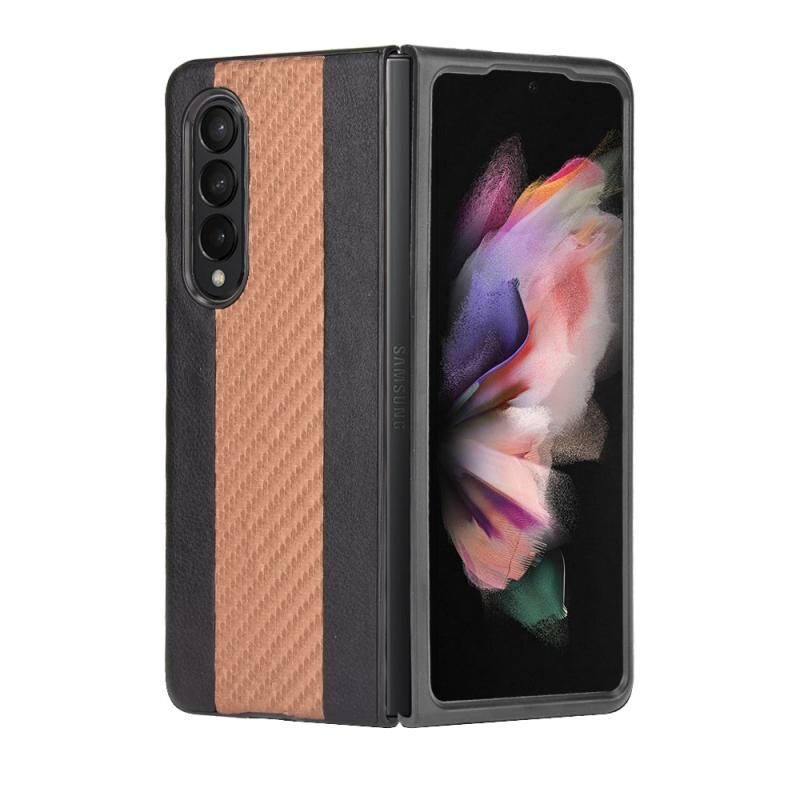 Για Samsung Galaxy Z Fold3 5G Litchi Υφή + Carbon Fiber υπόθεση τηλεφώνου (Μαύρο)