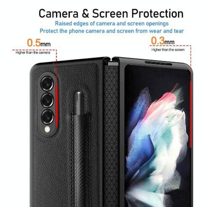 Για το Samsung Galaxy Z Fold3 5G Litchi υφή μεντεσέ προστασία πτυσσόμενο τηλέφωνο υπόθεση με κάλυμμα στυλό (μπλε)