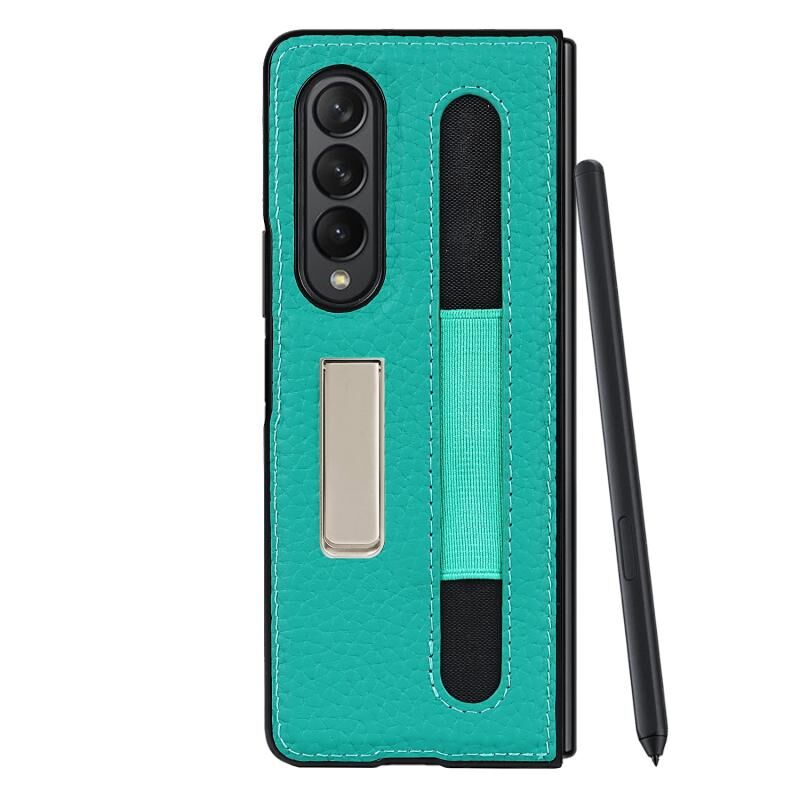 Για Samsung Galaxy Z Fold3 5G Litchi Υφή δέρμα προστατευτική θήκη με θήκη & υποδοχή στυλό (πράσινο)