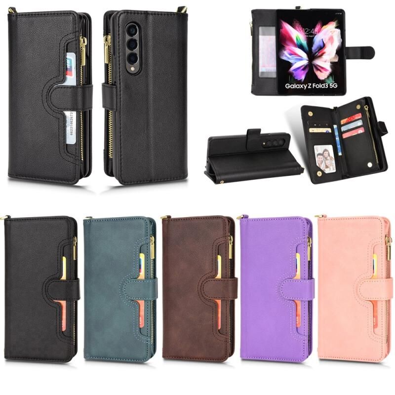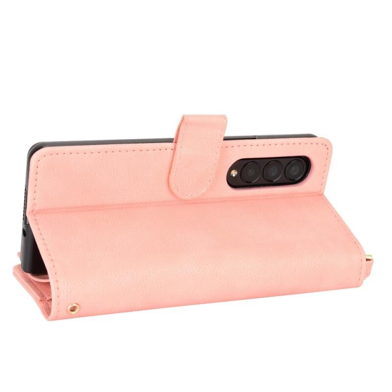 Για Samsung Galaxy Z Fold3 5G Litchi υφή φερμουάρ δερμάτινη θήκη τηλεφώνου (ρόζ)