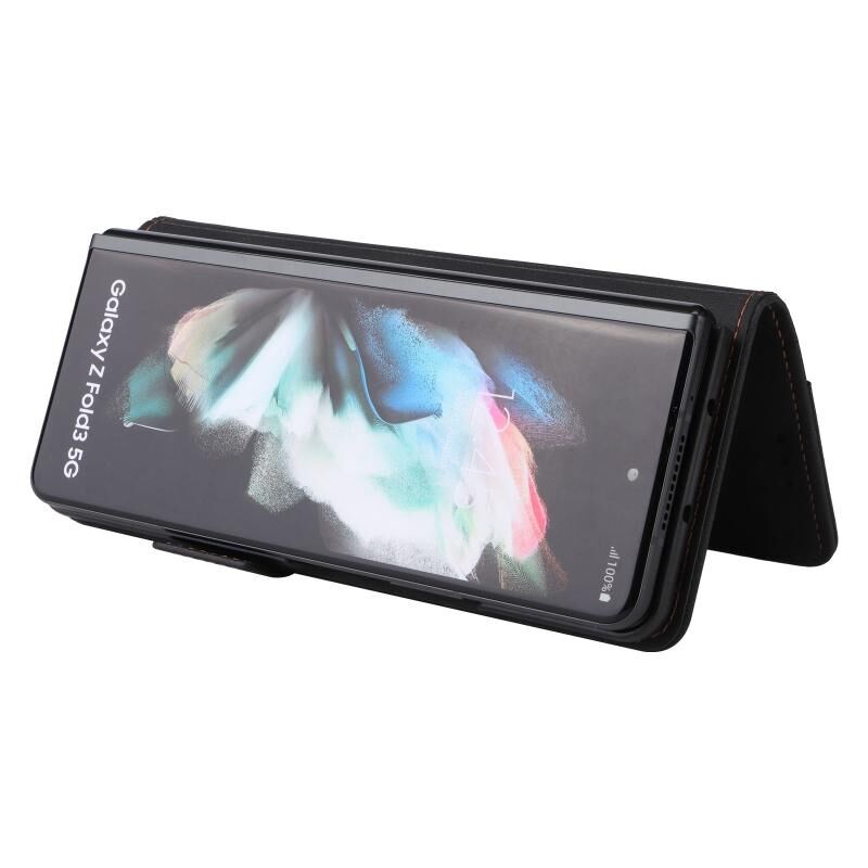 Για Samsung Galaxy Z Fold3 5G μαγνητικό κούμπωμα Flip δερμάτινη θήκη τηλεφώνου (μαύρο)
