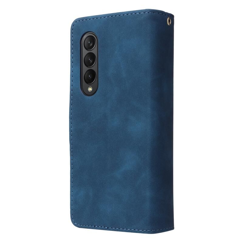 Για Samsung Galaxy Z Fold3 5G πολυλειτουργικό παγωμένο φερμουάρ πορτοφόλι δερμάτινη θήκη τηλεφώνου (Μπλε)