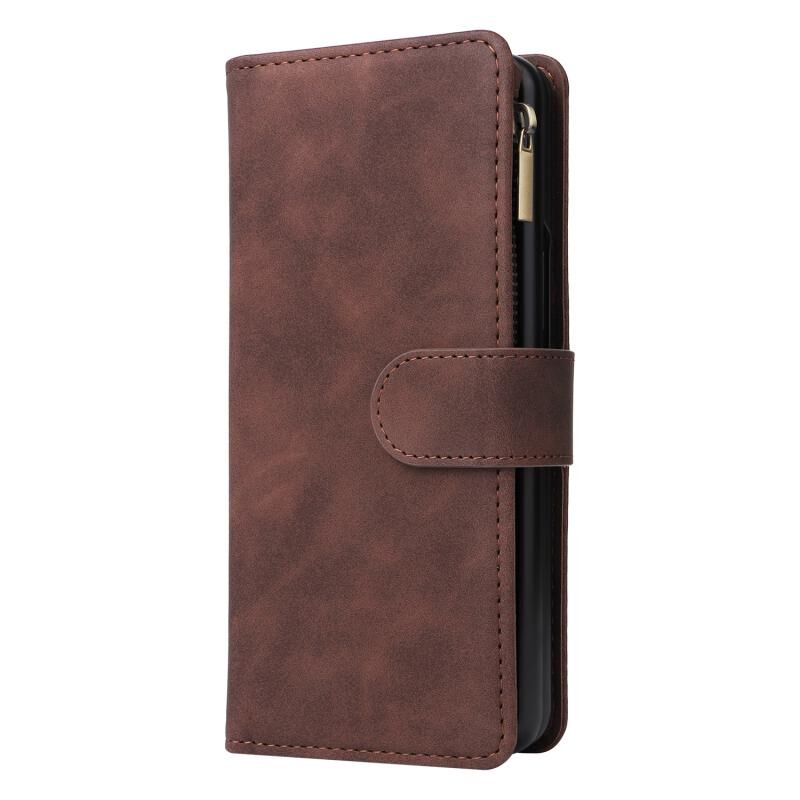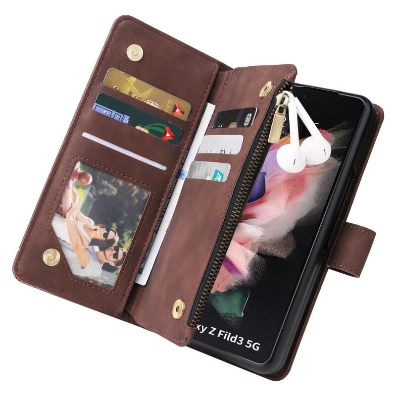 Για Samsung Galaxy Z Fold3 5G πολυλειτουργικό παγωμένο φερμουάρ πορτοφόλι δερμάτινη θήκη τηλεφώνου (Καφέ)