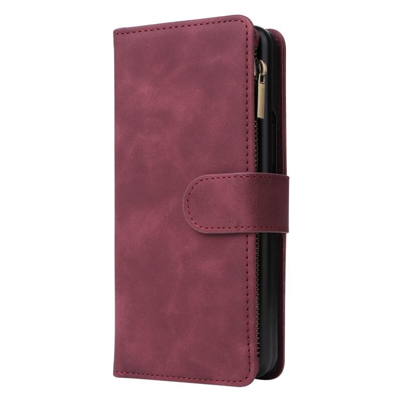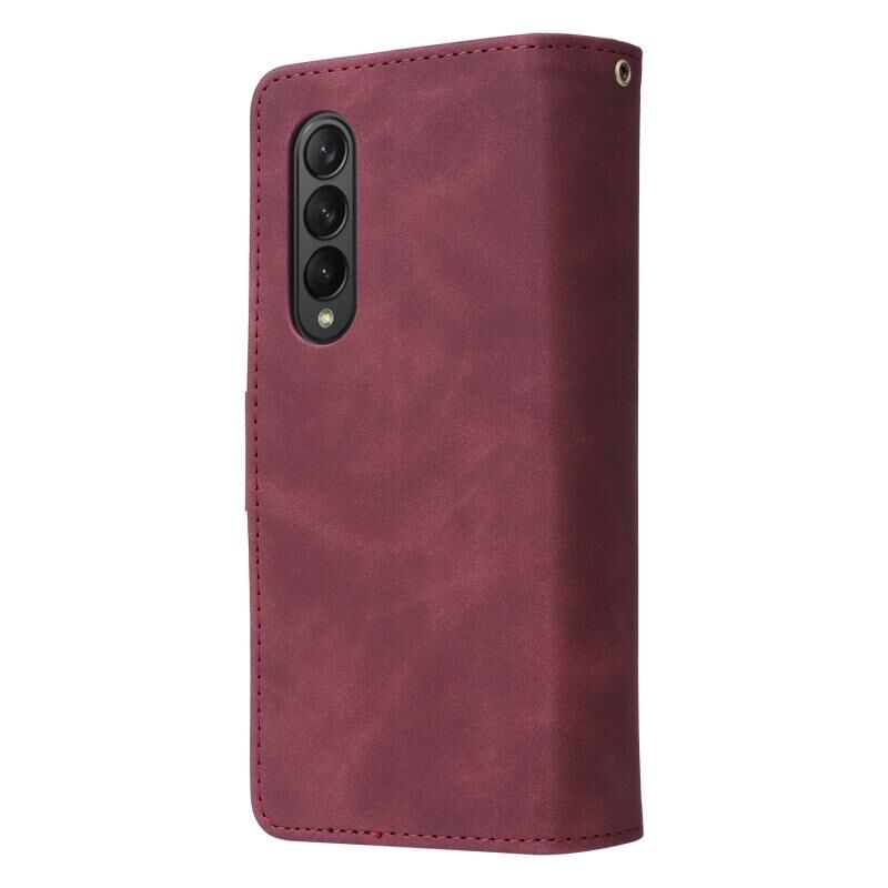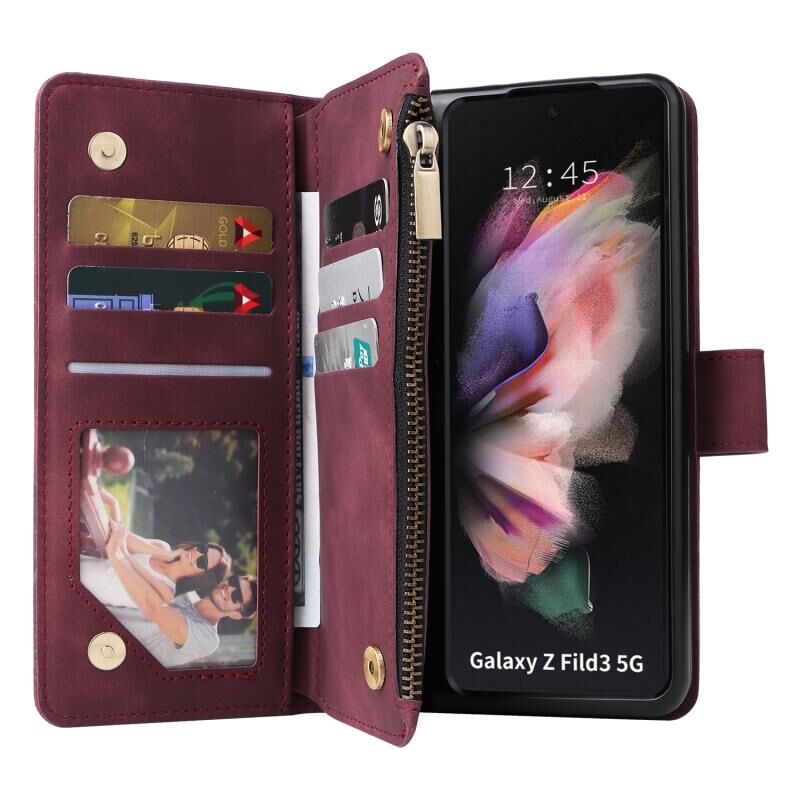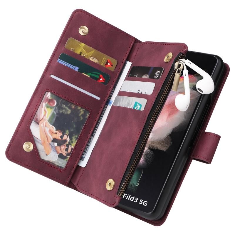 Για Samsung Galaxy Z Fold3 5G πολυλειτουργικό παγωμένο φερμουάρ πορτοφόλι δερμάτινη θήκη τηλεφώνου (Κρασοκόκκινο)