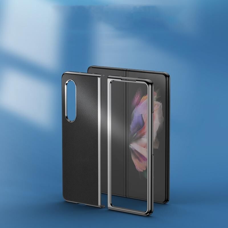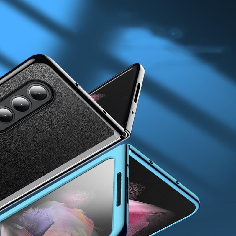 Για το Samsung Galaxy Z Fold3 5G Επιμετάλλωση δερμάτινη θήκη τηλεφώνου (Ροζ χρυσός)