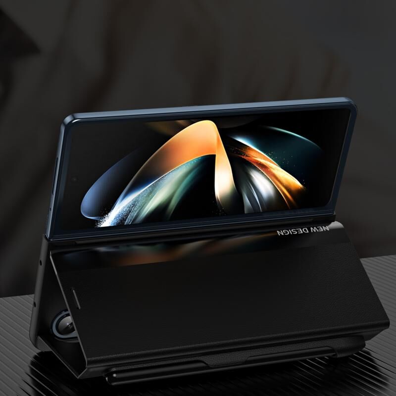 Για Samsung Galaxy Z Fold3 5G Αδιάβροχο πλήρους κάλυψης δερμάτινη θήκη τηλεφώνου με υποδοχή για στυλό (μπλε)