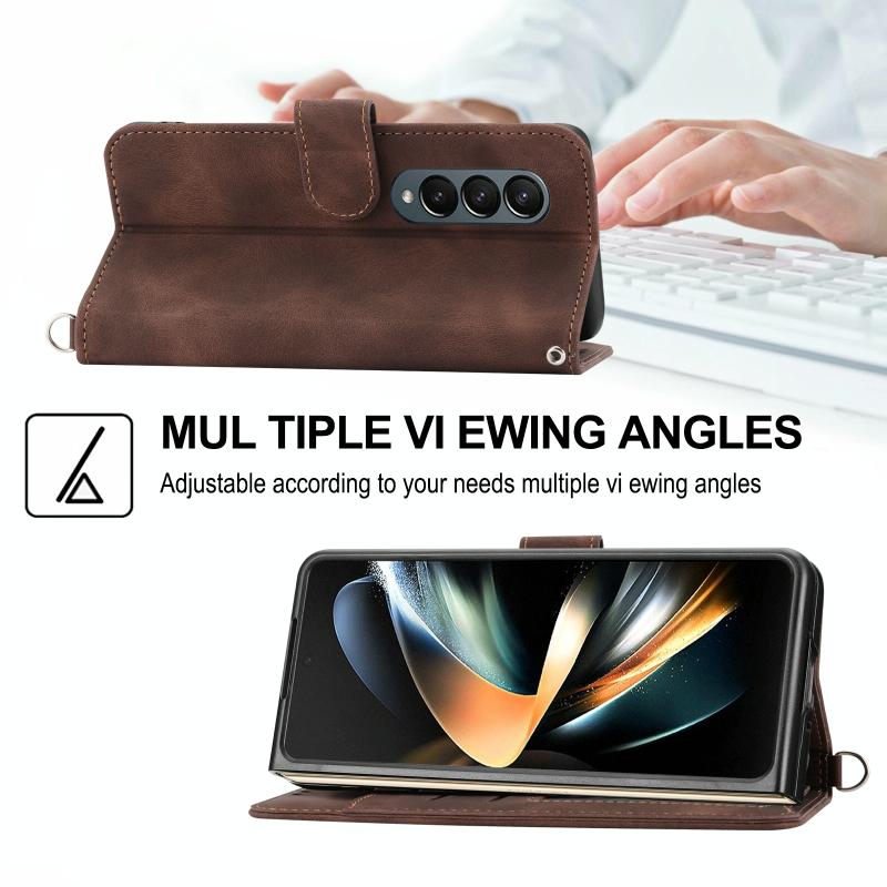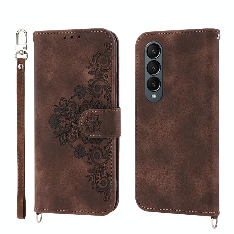 Θήκη τηλεφώνου Samsung Galaxy Z Fold3 5G από δέρμα με ανάγλυφα λουλούδια και υφή δέρματος (Καφέ)
