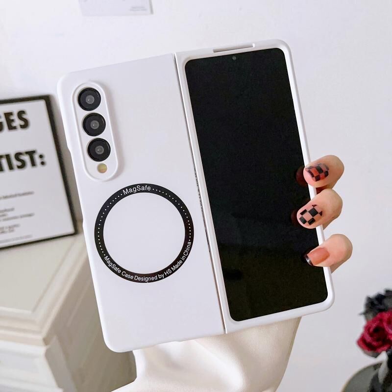 Θήκη τηλεφώνου με μαγνητική σύνδεση MagSafe για Samsung Galaxy Z Fold3 5G (Λευκό) με αίσθηση δέρματος.