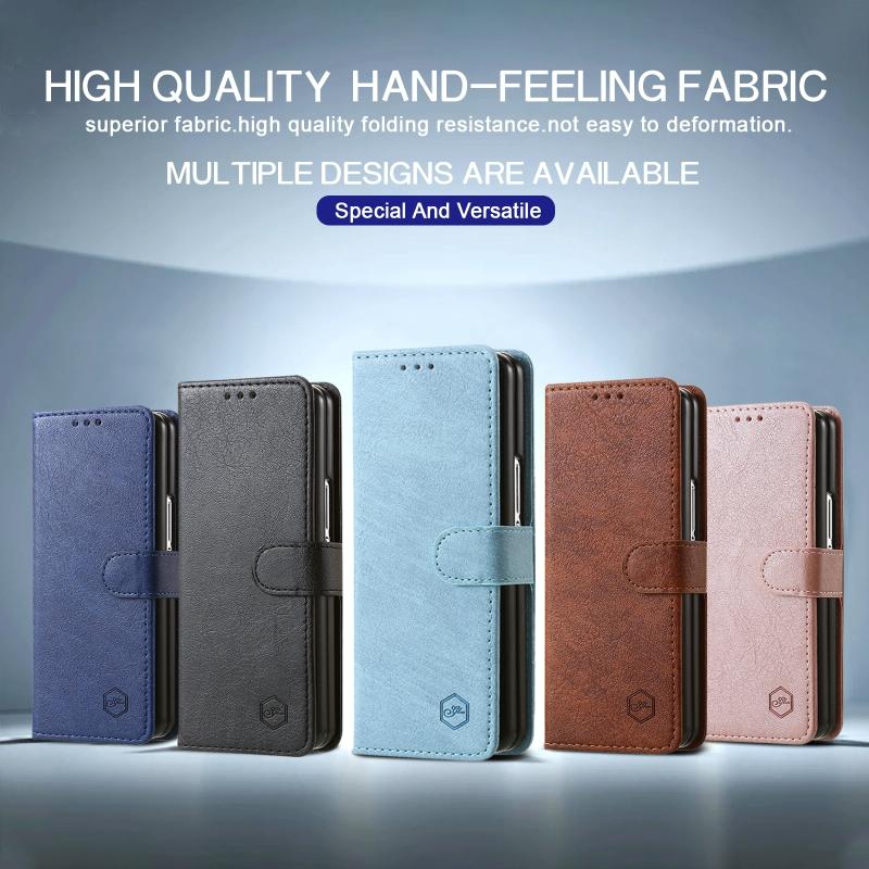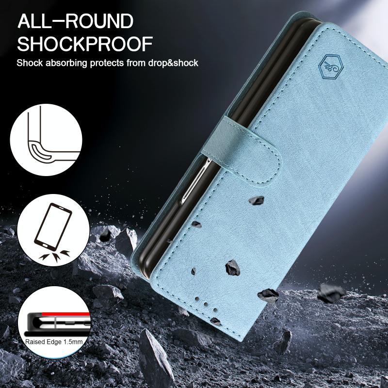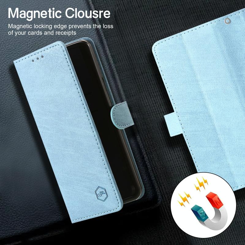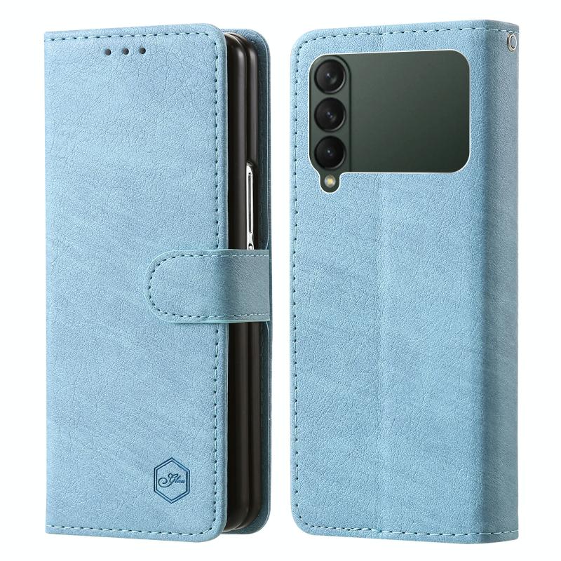 For Samsung Galaxy Z Fold3 5G Skin Feeling Oil Leather Texture PU + TPU Phone Case(Light Blue)