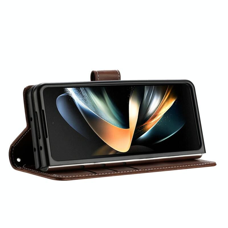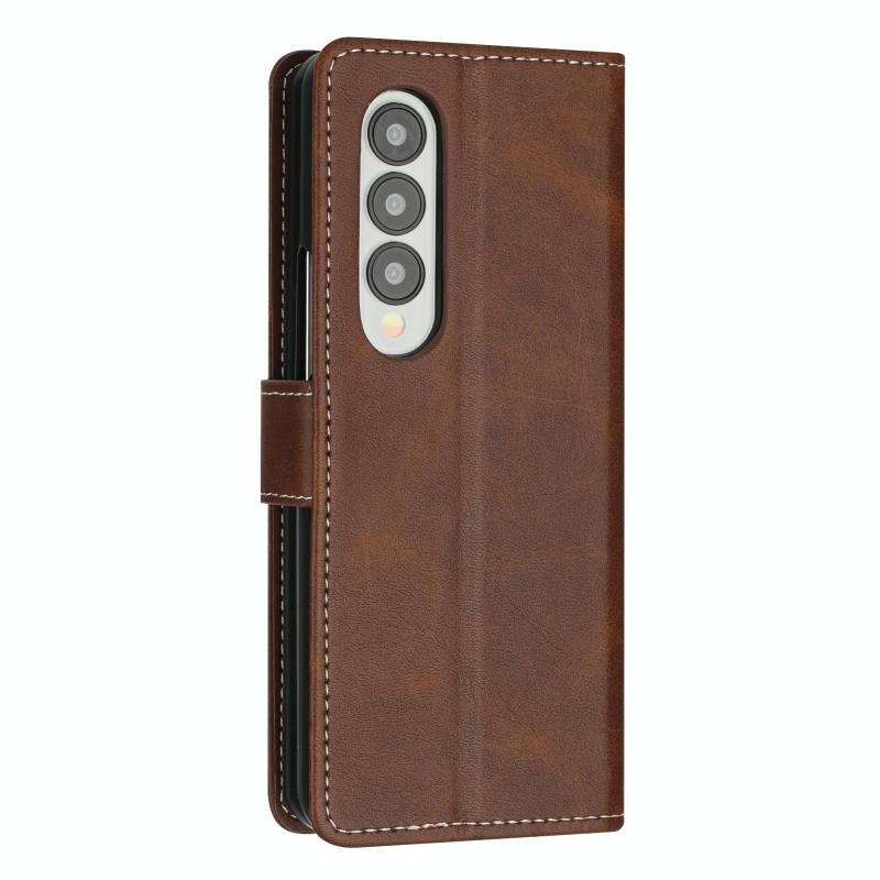 Για Samsung Galaxy Z Fold3 5G ραφή μοσχάρι υφή πόρπη πτυσσόμενο δέρμα τηλέφωνο υπόθεση (καφέ)