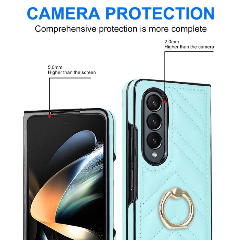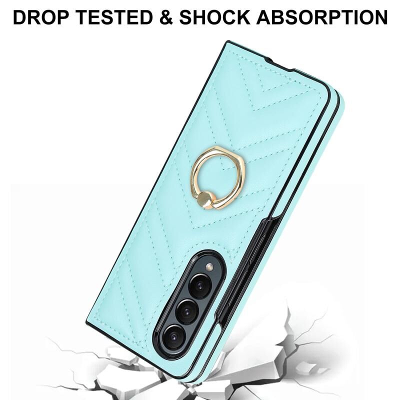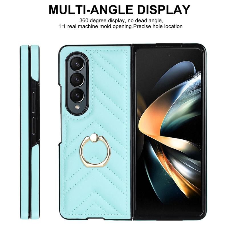 Για το Samsung Galaxy Z Fold3 5G σε σχήμα V Πτυσσόμενη θήκη τηλεφώνου με περιστρεφόμενο δακτύλιο (πράσινο)