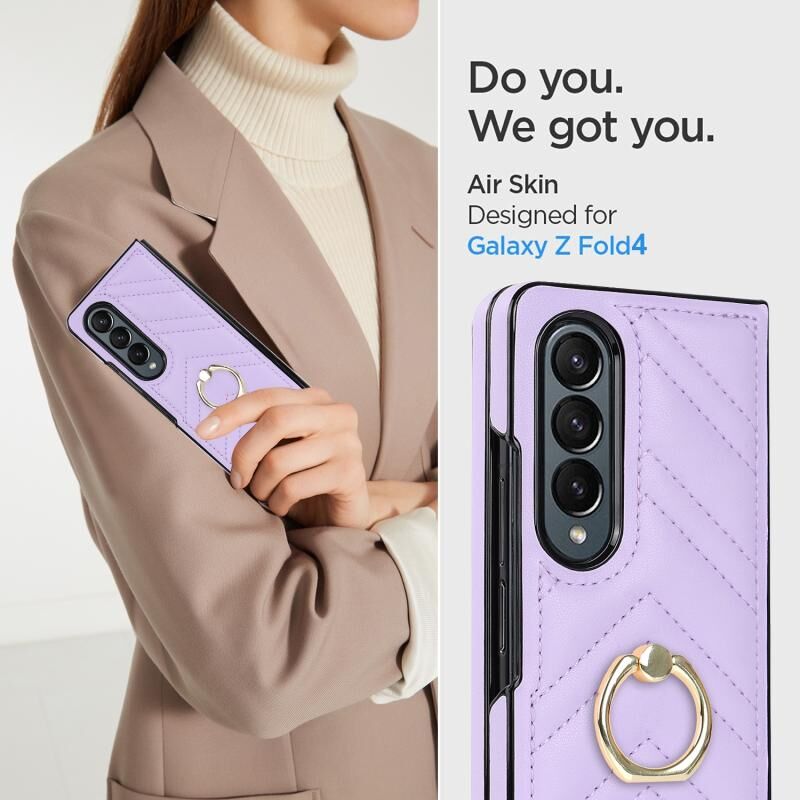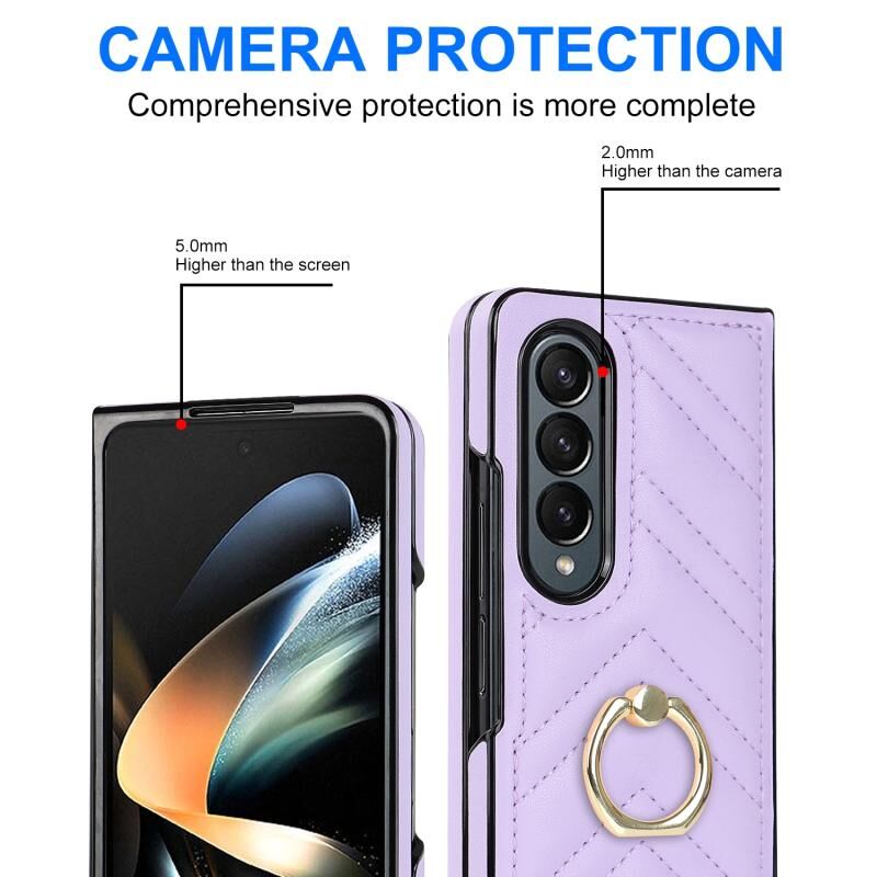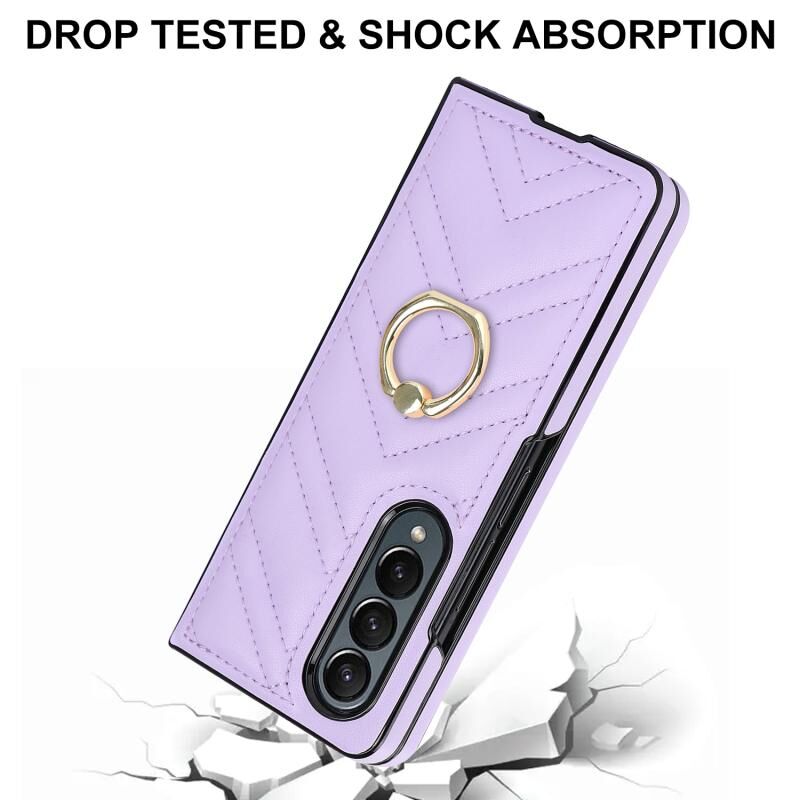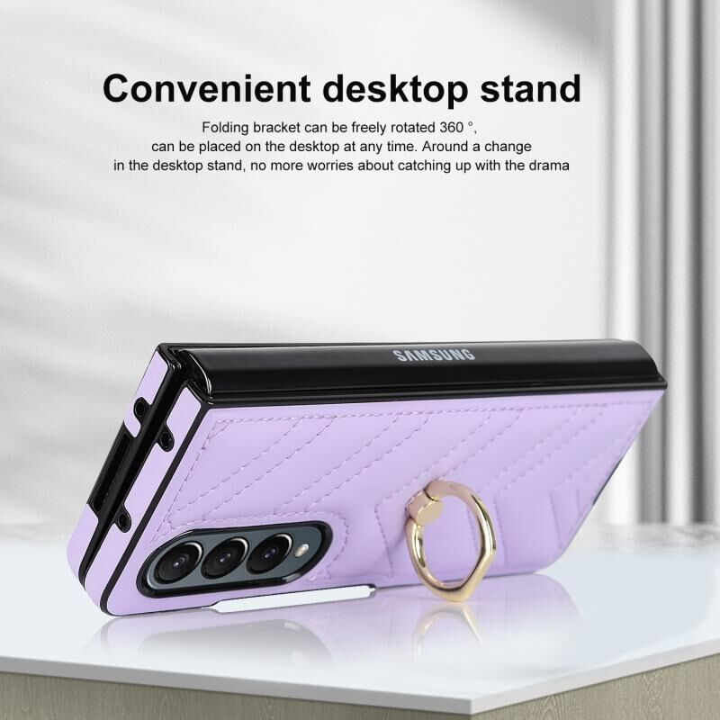 Για το Samsung Galaxy Z Fold3 5G σε σχήμα V Πτυσσόμενη θήκη τηλεφώνου με περιστρεφόμενο δακτύλιο (Μωβ)