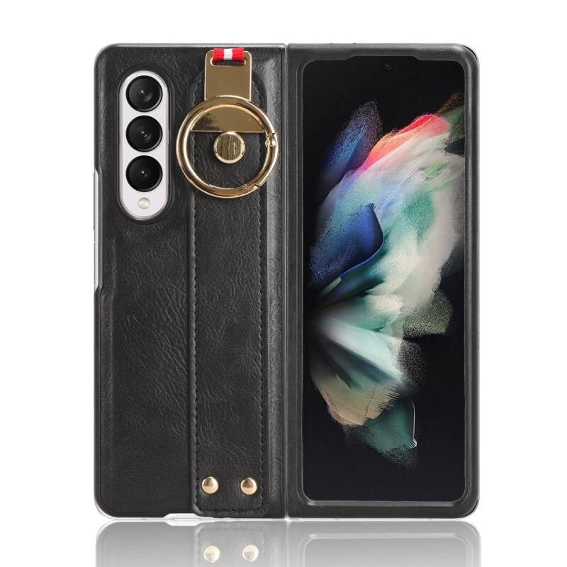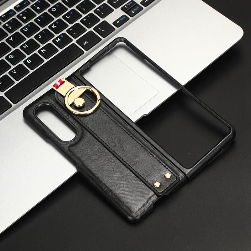 Για Samsung Galaxy Z Fold3 5G Wristband δέρμα πίσω θήκη τηλεφώνου (Μαύρο)