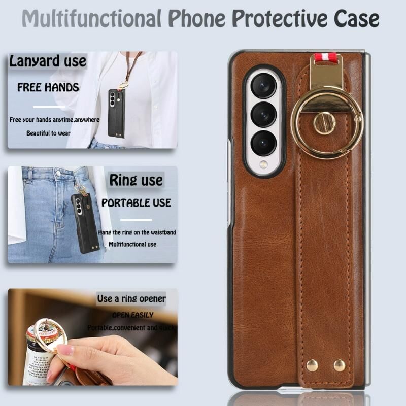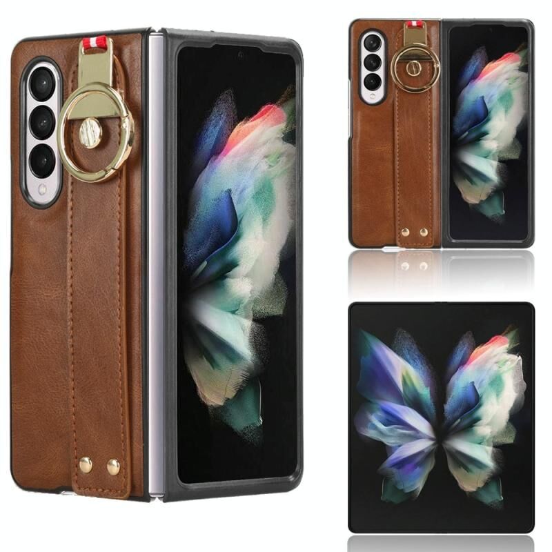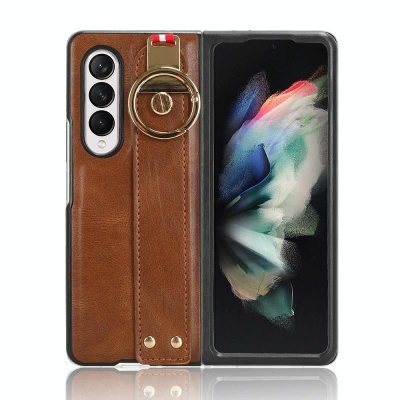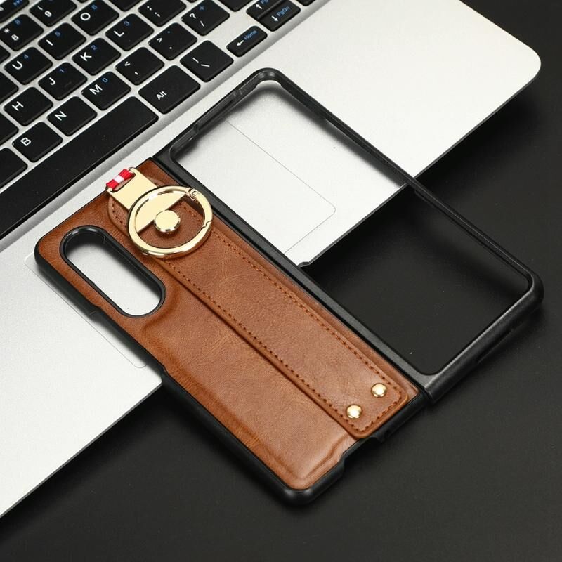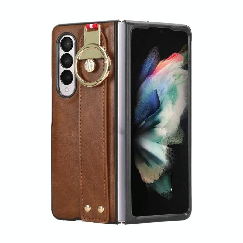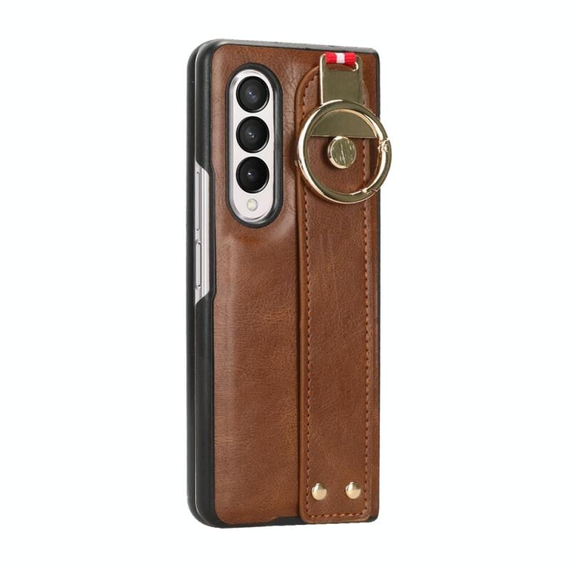 Για Samsung Galaxy Z Fold3 5G Wristband δέρμα πίσω υπόθεση τηλεφώνου (καφέ)