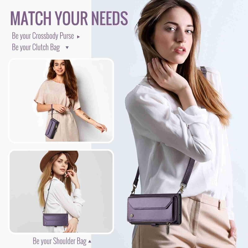 6. 10 υποδοχές για κάρτες + 2 υποδοχές για μετρητά + 1 πορτοφόλι με φερμουάρ + Μακρύς ιμάντας ώμου + κοντός ιμάντας χεριού (στην πραγματικότητα με βάση την εικόνα)