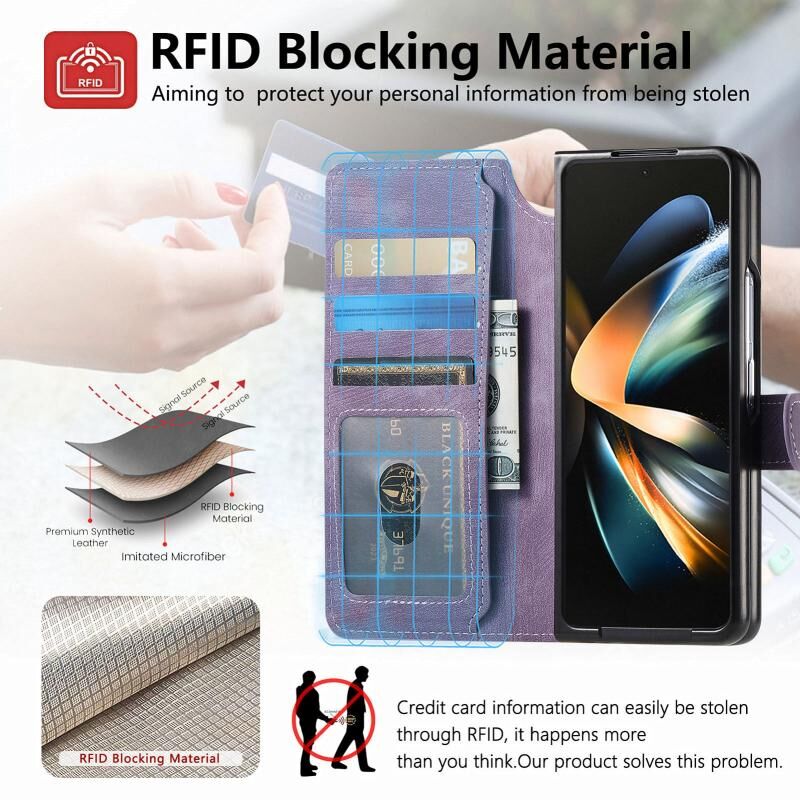 Θήκη για Samsung Galaxy Z Fold3 CaseNeo MagSafe RFID Αντικλεπτική Ρετρό Δερμάτινη Θήκη Τηλεφώνου (Πράσινο) (Μωβ)
