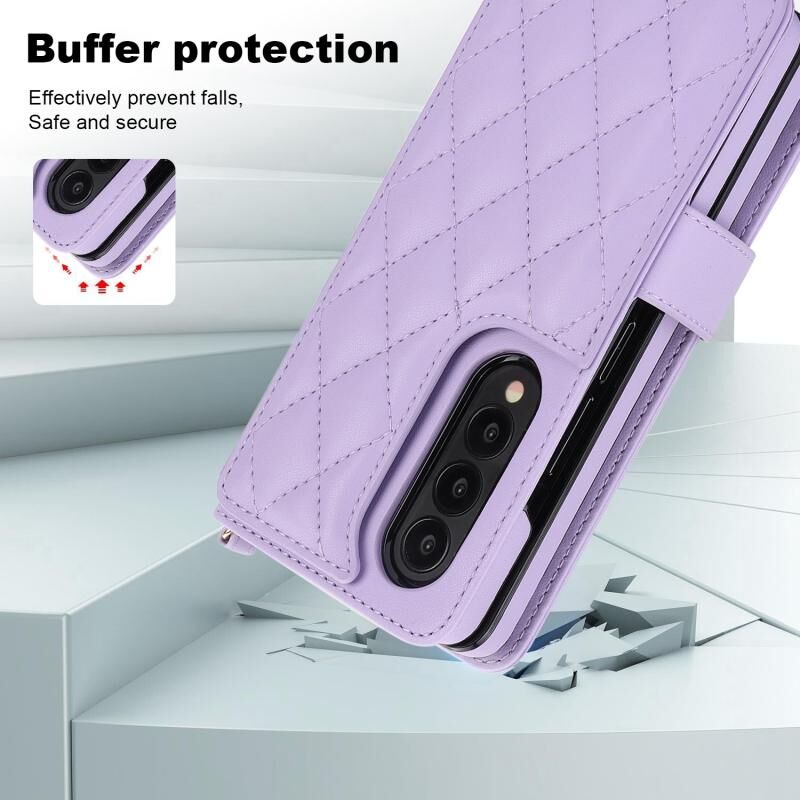 Για Samsung Galaxy Z Fold3 Crossbody πολυλειτουργική θήκη τηλεφώνου από δέρμα (μωβ)