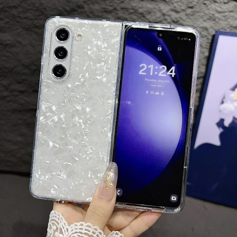 Για το Samsung Galaxy Z Fold3 Pearlescent Shell Υφή υπόθεση τηλεφώνου (Λευκό)