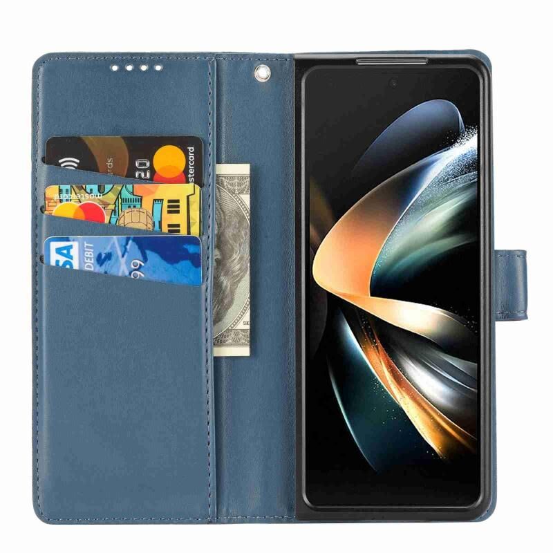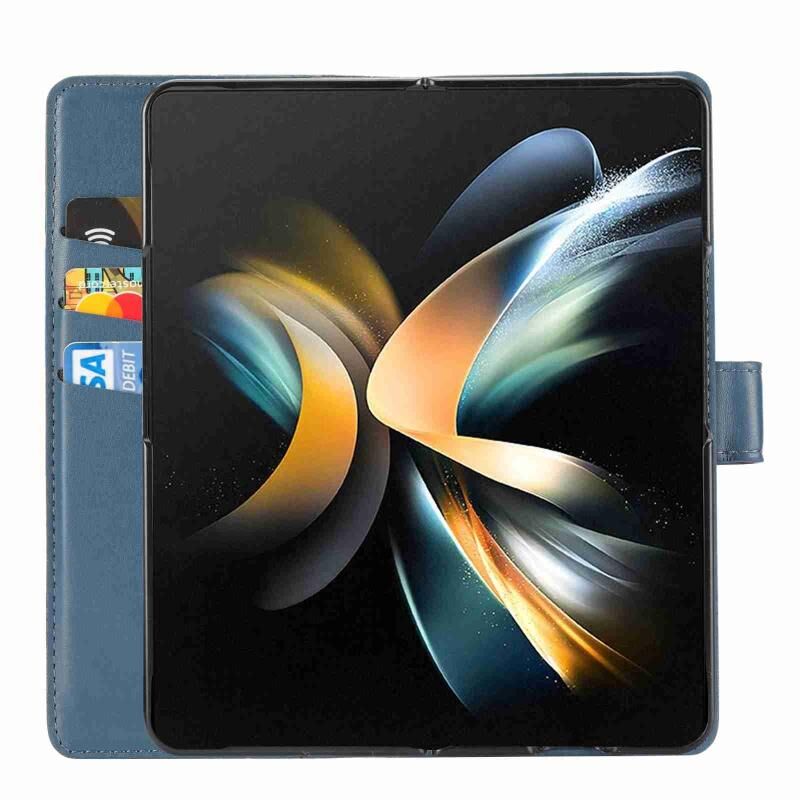 Θήκη τηλεφώνου Samsung Galaxy Z Fold3 από γνήσιο δέρμα PU με ανάγλυφη υφή και λεπτομέρειες γραμμής (Μπλε)