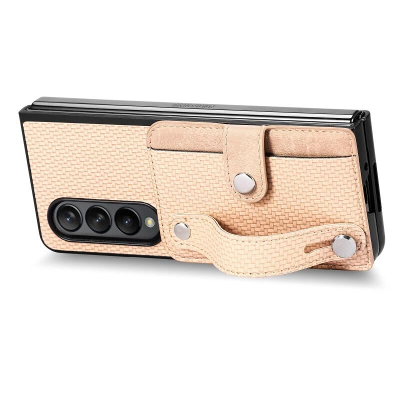 Για Samsung Galaxy Z Fold3 Wristband Kickstand κάρτα πορτοφόλι πίσω κάλυμμα τηλέφωνο υπόθεση (χακί)