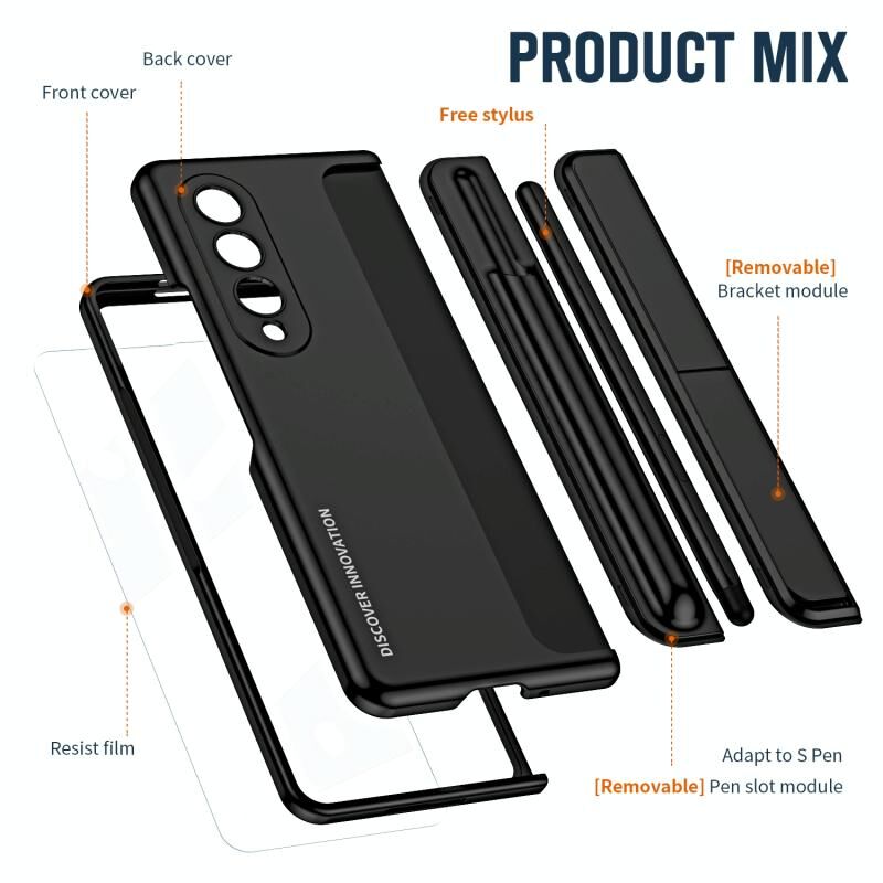 Για το Samsung Galaxy Z Fold4 2 σε 1 Αποσπώμενη θήκη τηλεφώνου PC με θήκη και υποδοχή για στυλό (Μαύρο)