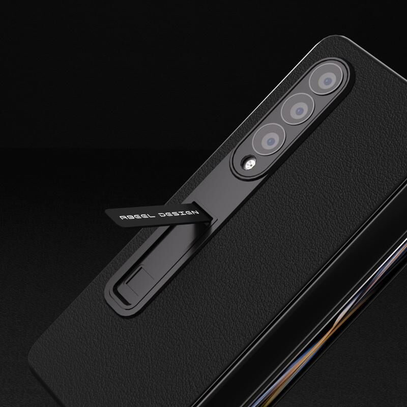 Θήκη τηλεφώνου με βάση για Samsung Galaxy Z Fold4 5G ABEEL, από γνήσιο δέρμα, σε μαύρο χρώμα Wave Black Edge (Μαύρο).