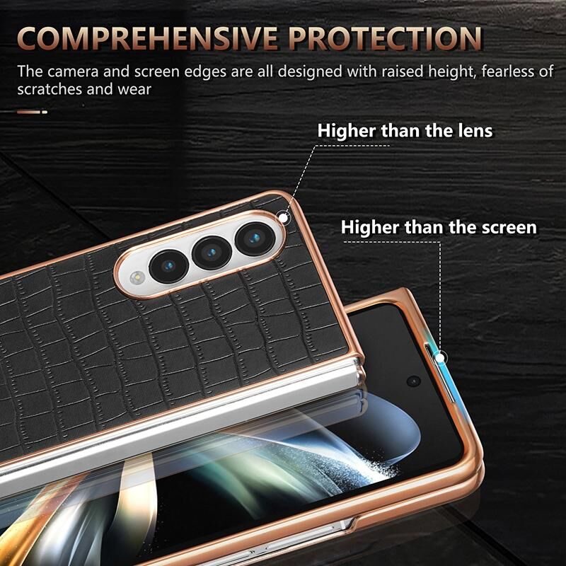 For Samsung Galaxy Z Fold4 5G AZNS Electroplated Frame Crocodile Texture Full Coverage Phone Case(White) (AZNS)