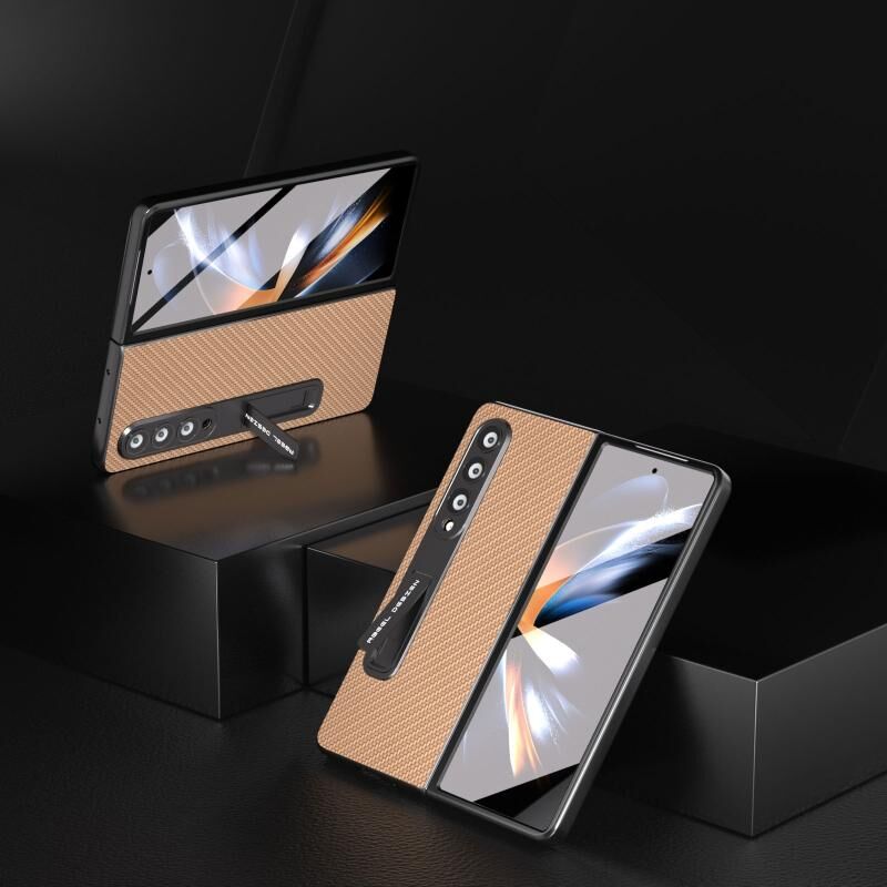 Για Samsung Galaxy Z Fold4 5G Carbon Fiber υφή 5G ενσωματωμένη προστατευτική θήκη τηλεφώνου με θήκη (χρυσό)