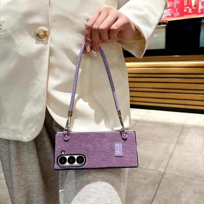 Για Samsung Galaxy Z Fold4 5G Άνετη σύντομη βελούδινη θήκη τηλεφώνου πλήρους κάλυψης με λουράκι καρπού (Μωβ)