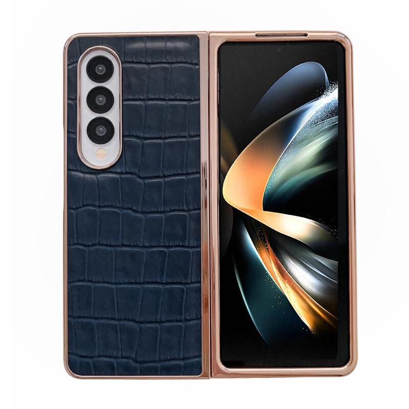 Θήκη τηλεφώνου Samsung Galaxy Z Fold4 5G με γνήσιο δέρμα υφής κροκόδειλου και ηλεκτρολυτική επίστρωση (Μαύρο)