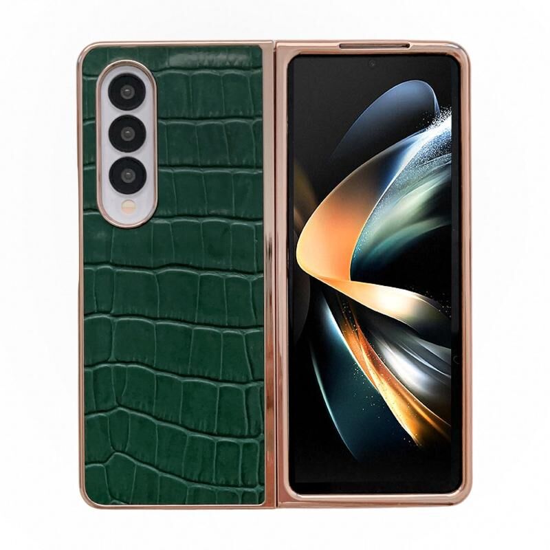 Θήκη τηλεφώνου Samsung Galaxy Z Fold4 5G με γνήσιο δέρμα υφής κροκόδειλου και ηλεκτρολυτική επίστρωση (Μαύρο)