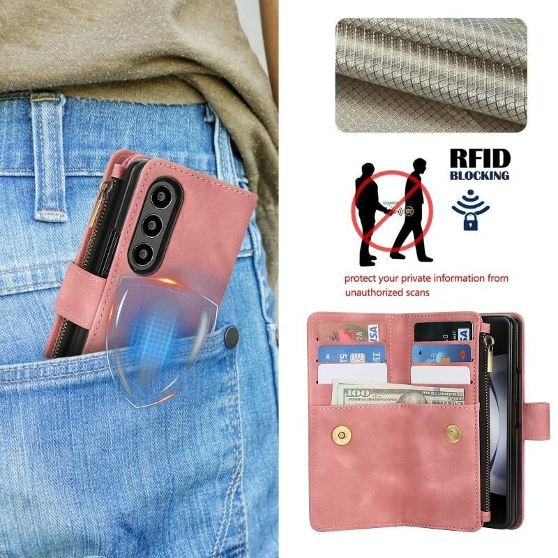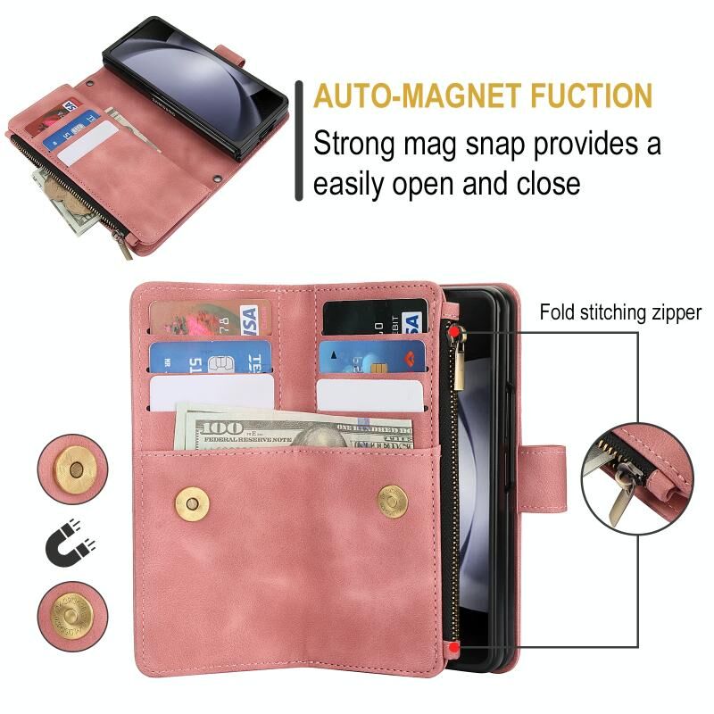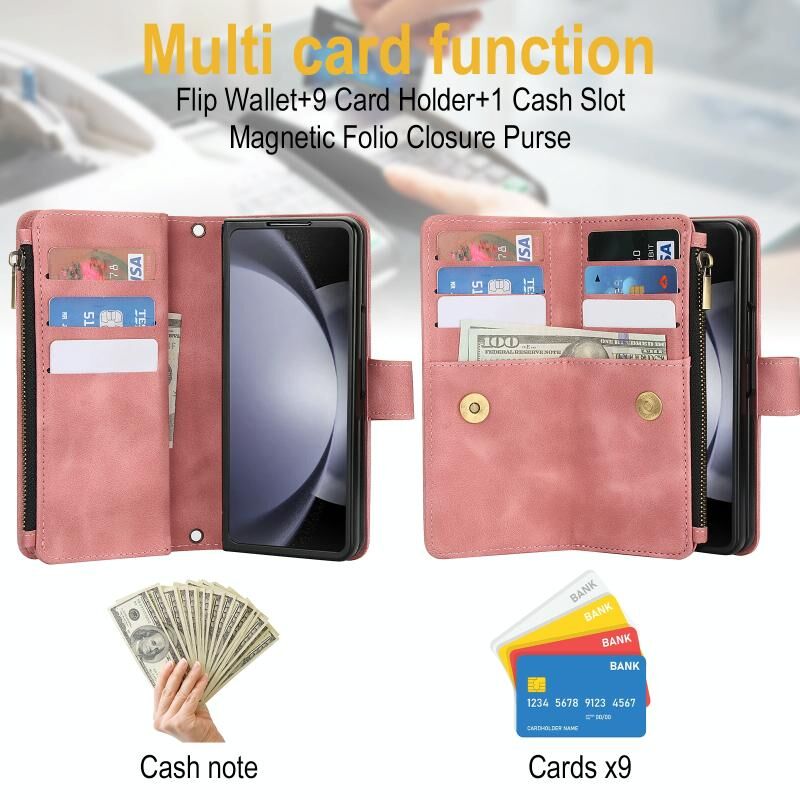 2. Λειτουργία πορτοφολιού πολλαπλών καρτών: 9 υποδοχές για κάρτες και 1 θήκη μετρητών με φερμουάρ για να αποθηκεύετε τις πιστωτικές σας κάρτες, μετρητά ή μικρά χαρτονομίσματα για τις καθημερινές σας ανάγκες.