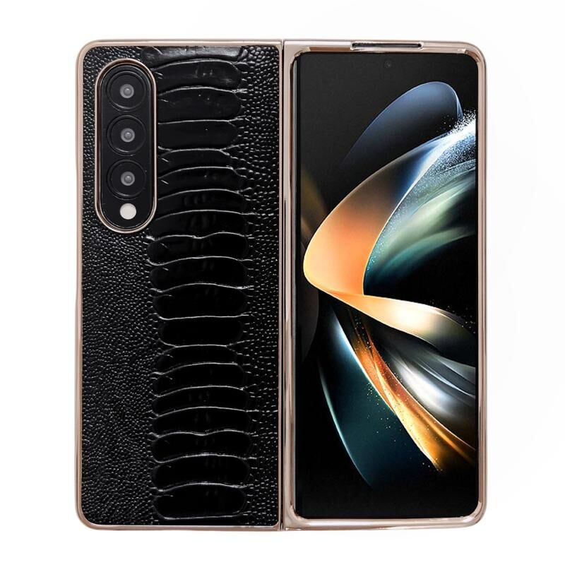 Θήκη τηλεφώνου Samsung Galaxy Z Fold4 5G από γνήσιο δέρμα σειράς Weilai με νανοεπίστρωση (Μαύρο)