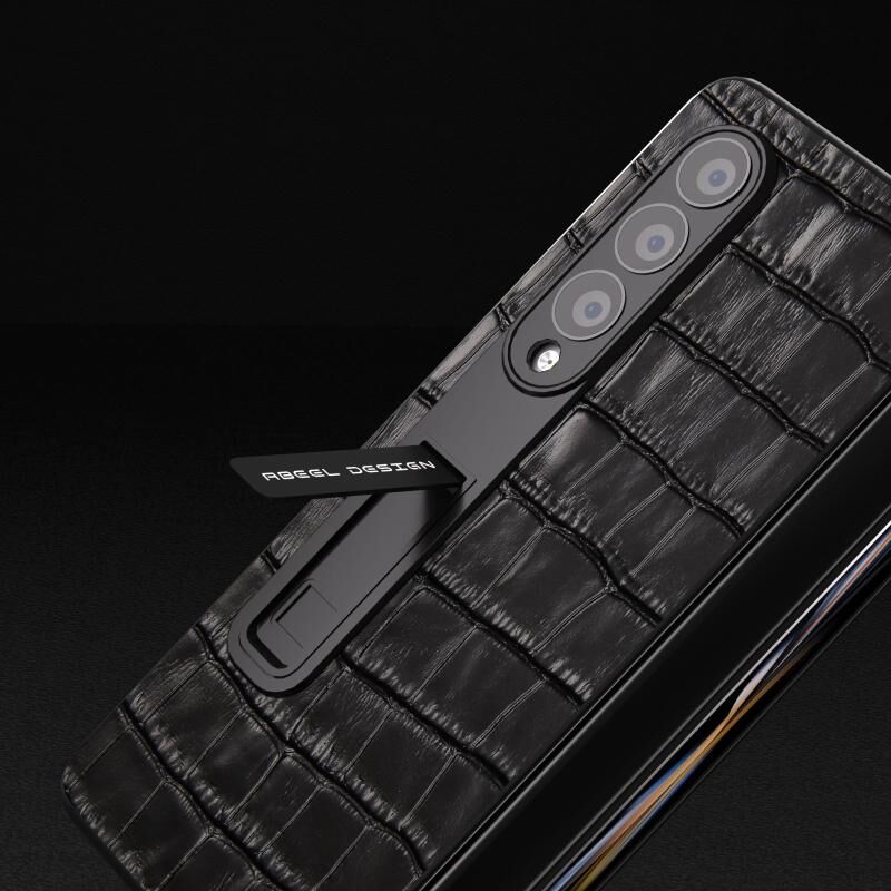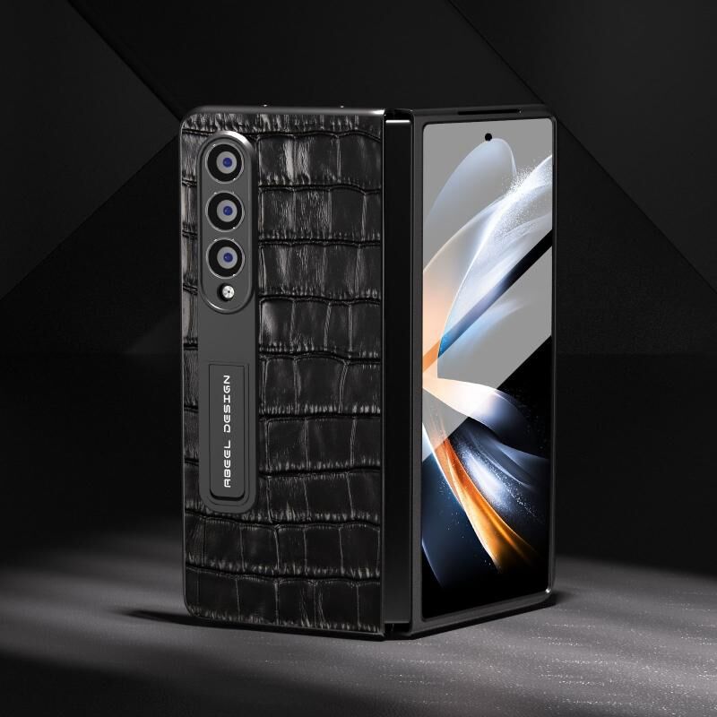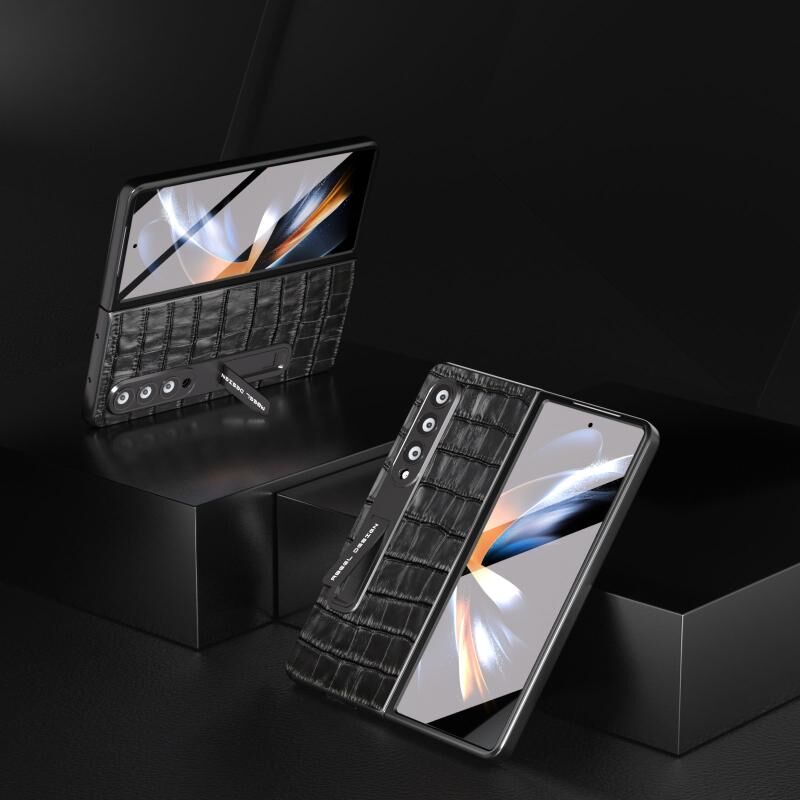 Θήκη τηλεφώνου από γνήσιο δέρμα με ενσωματωμένη υφή κροκόδειλου για Samsung Galaxy Z Fold4 5G (Καφέ)
