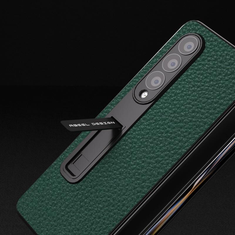Θήκη τηλεφώνου από γνήσιο δέρμα Litchi για Samsung Galaxy Z Fold4 5G με ενσωματωμένη βάση (Μαύρο)