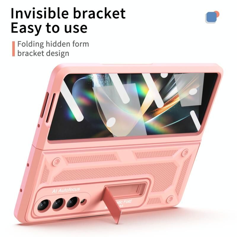 Για το Samsung Galaxy Z Fold4 5G Ενσωματωμένη θήκη τηλεφακού TPU με μεντεσέ με βάση (ροζ)