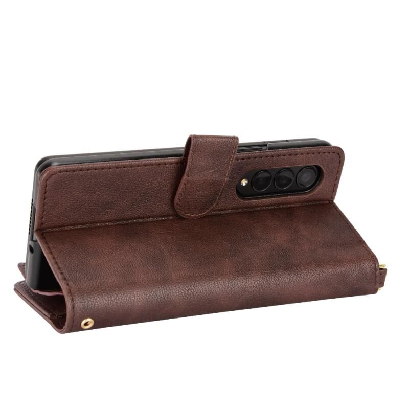 Για Samsung Galaxy Z Fold4 5G Litchi υφή φερμουάρ δερμάτινη θήκη τηλεφώνου (καφέ)