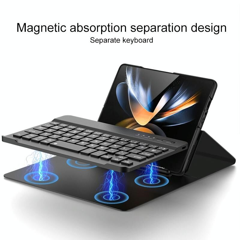 Για Samsung Galaxy Z Fold4 5G Μαγνητικό Πτυσσόμενο πληκτρολόγιο Bluetooth Δερμάτινη θήκη (σκούρο πράσινο)