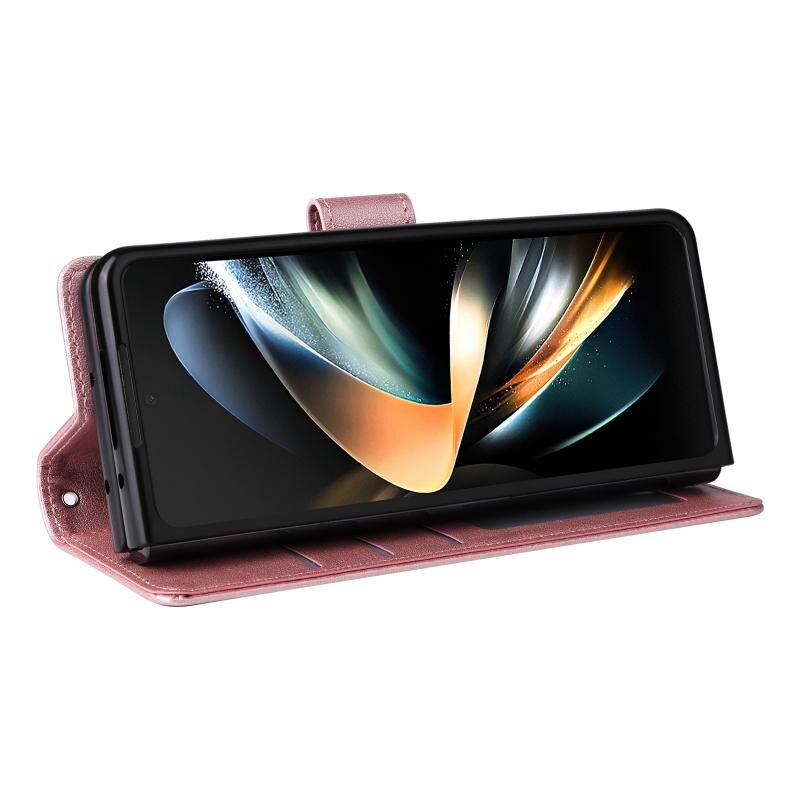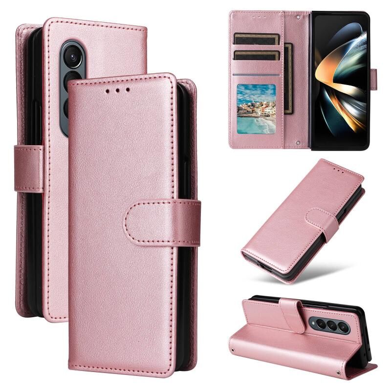 Για Samsung Galaxy Z Fold4 5G Πολυλειτουργική οριζόντια Flip δερμάτινη θήκη τηλεφώνου με τρεις υποδοχές για κάρτες (ροζ χρυσό)