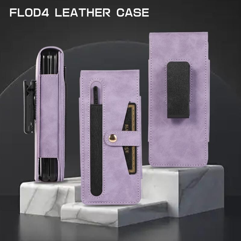 Για το Samsung Galaxy Z Fold4 5G PC Αναδιπλούμενη θήκη τηλεφώνου από αντικραδασμικό δέρμα με γραφίδα (μωβ)