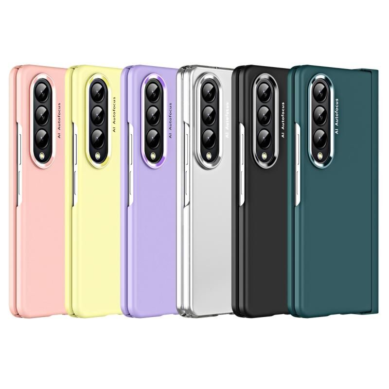 Για Samsung Galaxy Z Fold4 5G δέρμα αίσθηση δύο χρωμάτων φακό επαφής μεντεσέ Flip υπόθεση τηλεφώνου (κίτρινο)